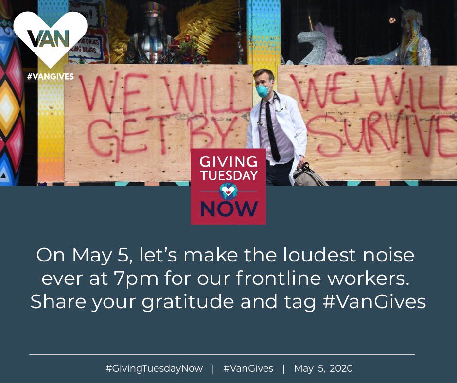 Today’s the day—#GivingTuesdayNow —let’s give what we can, make some noise and show our gratitude and support to our frontline workers. #vangives #GivingTuesdayNow  🙌🏾pic.twitter.com/nLdR3t3clq
