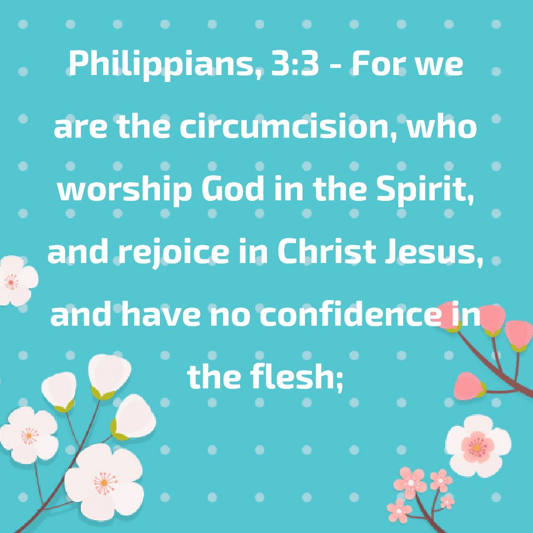 Philippians, 3:3 - For we are the circumcision, who worship God in the Spirit, and rejoice in Christ Jesus, and have no confidence in the flesh;pic.twitter.com/H2eNIcPYK9