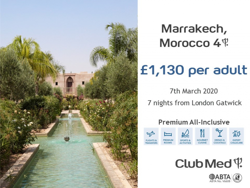 Stay at Club Med Marrakech, Morocco on the 7th of March for 7 nights from £1,130 per person based on premium All Inclusive