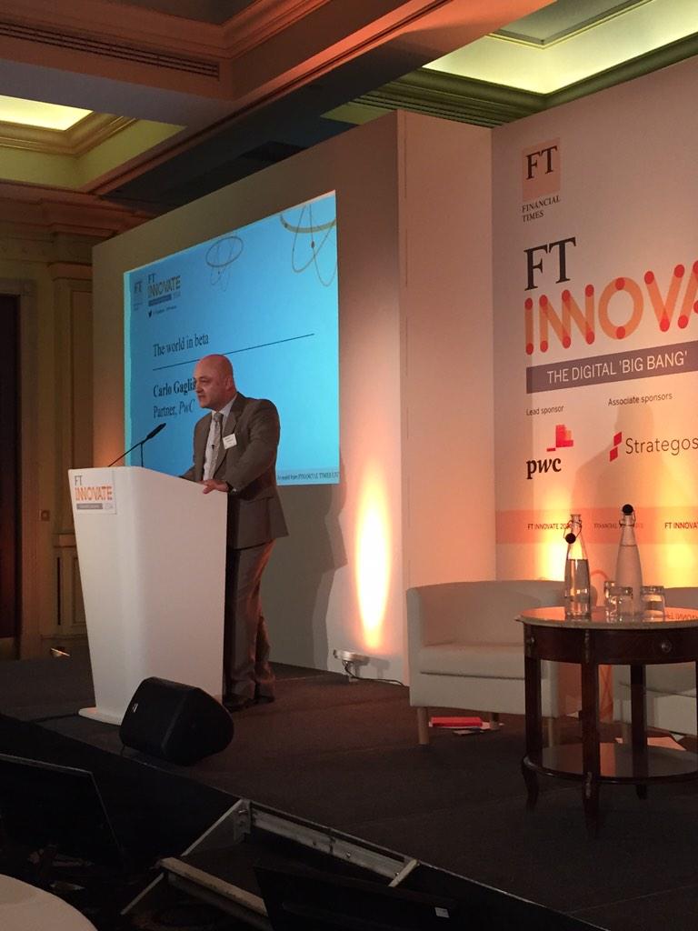 PwC's @_carlogagliardi now speaking on the #worldinbeta at #FTInnovatepic.twitter.com/MILzCvLxrE