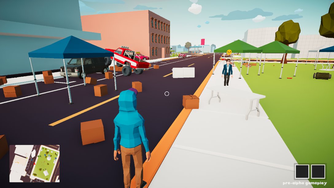 Lol yeah. I'm trying to still keep it simple and arcade like / cartoony but it was definitely inspired by Watch Dogs 2 where it felt more natural. I have cool downs and ratings randomized at generation for each NPC so they all start/reaction a bit differently which is cool.