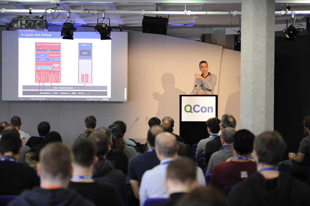 Felipe Huici introduces #Unikraft, an open source, incubator project under the auspices of the Xen Project and the @linuxfoundation aimed at automating the process of building customized images tailored to specific applications. @infoQ #qconlondon 2018 https://bit.ly/2NTFCi6 pic.twitter.com/crv7FvzAf0