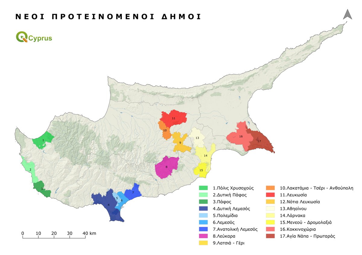 Οι 17 νέοι προτεινόμενοι Δήμοι της Κύπρου. The 17 new proposed Municipalities in Cyprus.