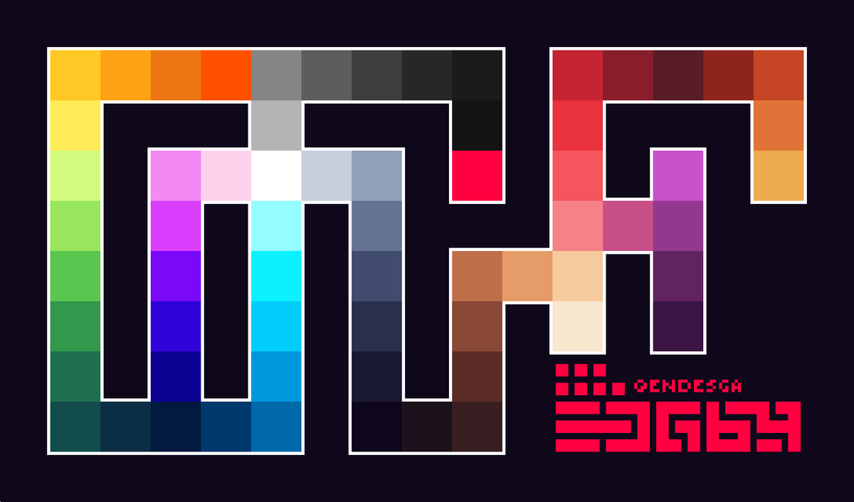 > EDG64 :::. Honed over years of palette creation, refined for materialistic pixelart and design. High contrast, high saturation, shaped around painting the organic and structured life of the heptaverse - Please RT!