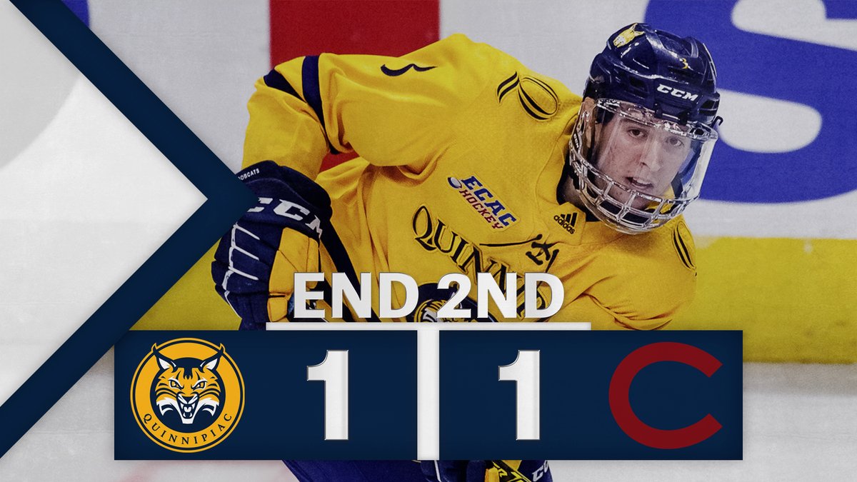All tied up after 2 periods after a Colgate goal with 12.6 seconds left in the period