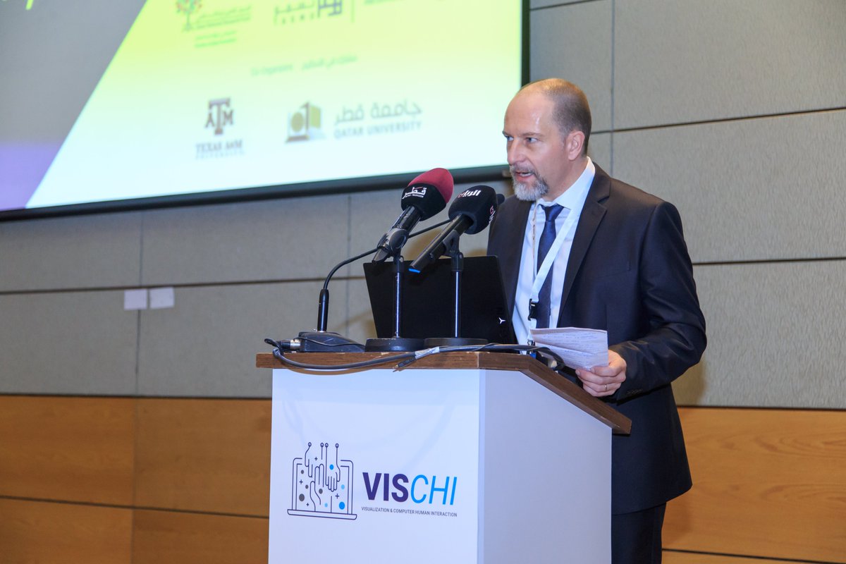 Dr. Michael Aupetit, Chair of VisCHI19 welcomes the audience to a gathering of experts and users of data visualization and computer-human interaction technologies. Besides expert talks at VisCHI19, the conference hosts a poster competition and projects demonstrations.