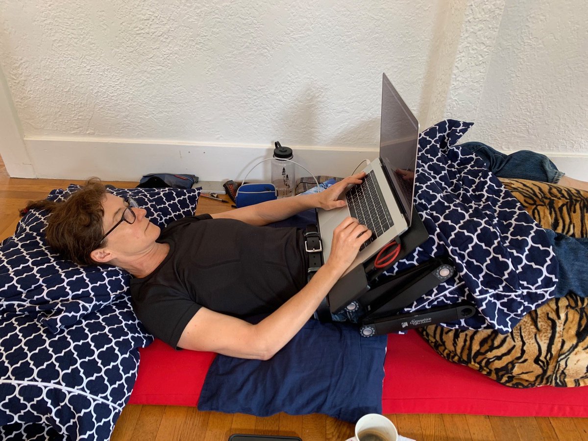 Yeah. In this situ I’m not using the angle legs on the stand - the buckwheat leg cushion is supporting it entirely. If I work in the bed, the mattress is a little softer than the floor and makes all the difference. I don’t use the cushion there.