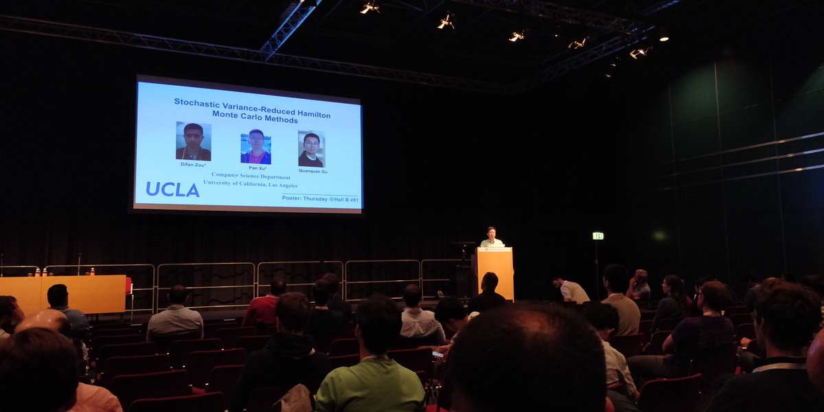 @PanXu_ML presented our paper on a new stochastic Hamiltonian Monte Carlo method at#ICML2018 today. Come to see our poster at Hall B #81 now!pic.twitter.com/HrxJFfWmaB