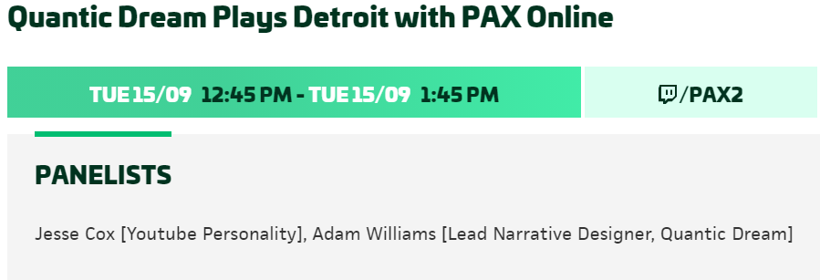 Did you hear about #PAXOnline? Our friend @JesseCox and our own Adam Williams are going to chat and play Detroit: Become Human over on Twitch soon!https://twitter.com/JesseCox/status/1305926245343875074 …