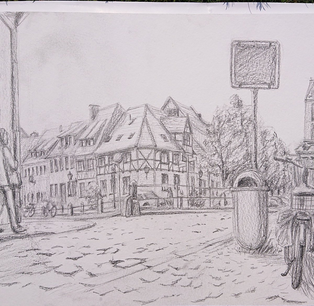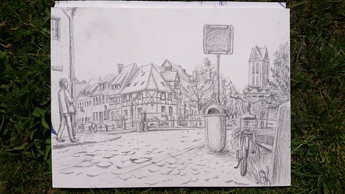 More drawing lessons in Wismar. Drew a building on the Marktplatz today.