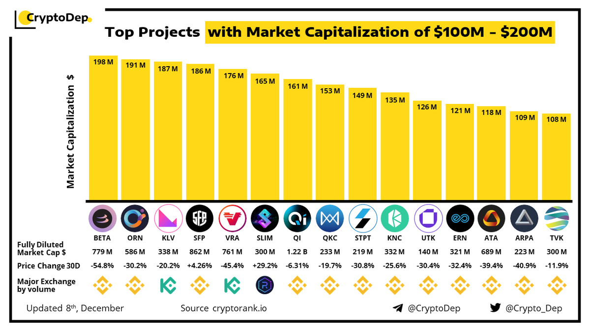 Top 15 Promising Projects with Market Cap Under $200M This time we made a list of the top 15 projects, in our opinion, with a current market cap under $200M, which you can take a closer look at