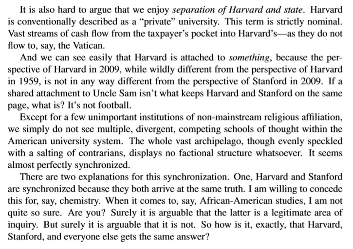 Correctly understood, the Cathedral isn't a conspiracy. It has no leaders, no cabal. It's a form of emergent order caused by faith in its institutions (and how the government is attuned to that faith). Moldbug is very careful in outlining what it is and how it comes to be.pic.twitter.com/3BQhwPg62k