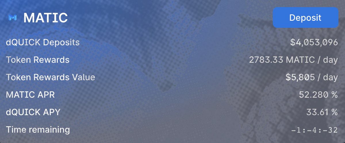 Then stake your $dQUICK to earn$MATIC: http://quickswap.exchange/#/syrup