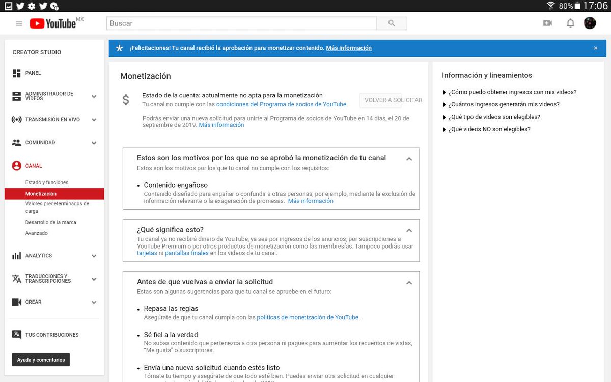 Y estas otras imágenes, en la última también aparece la Aprobación para monetizarpic.twitter.com/6thz1uTbke