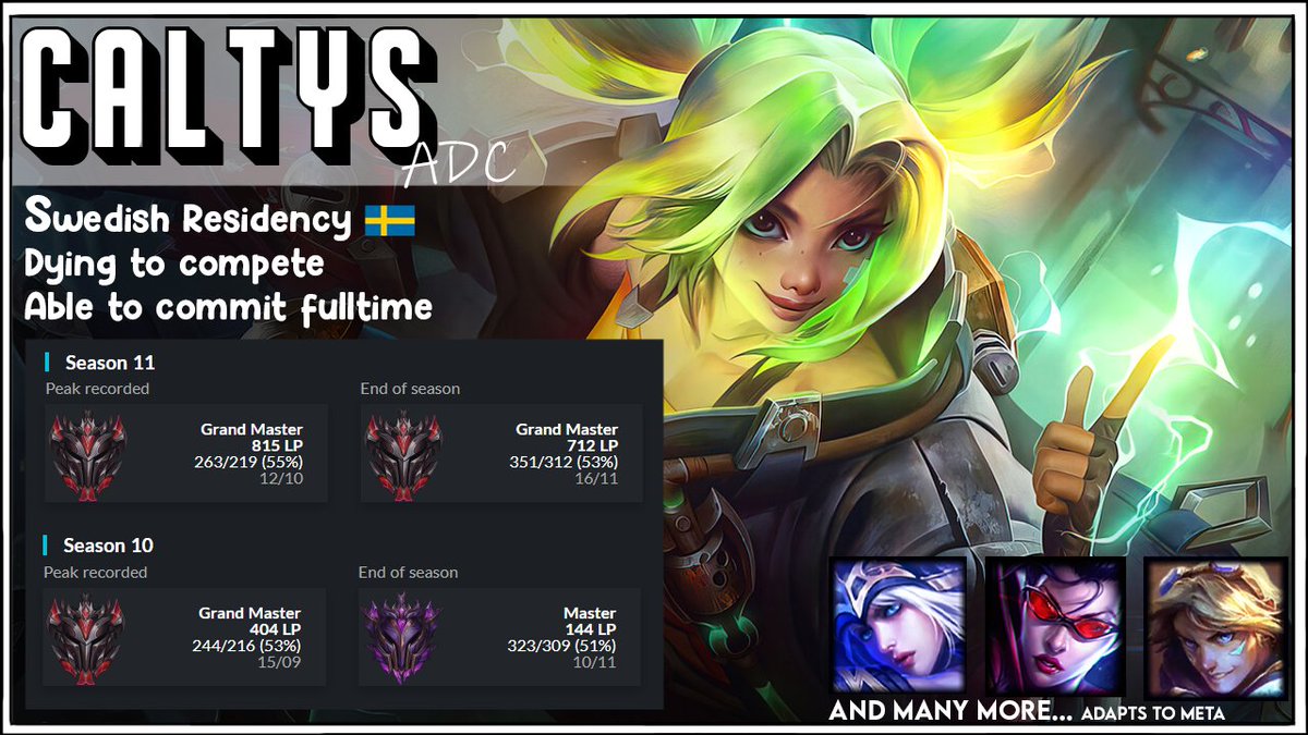 Contact: DM me or @achieveminds References:@Iamblackgstar@CoachFireVortex https://lolpros.gg/player/caltys/ pic.twitter.com/04EiwIF1eH