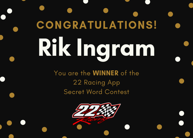 Thank you to everyone who has downloaded our 22 Racing Augmented Reality App & to those who participated in the Secret Word contest. We are happy to announce