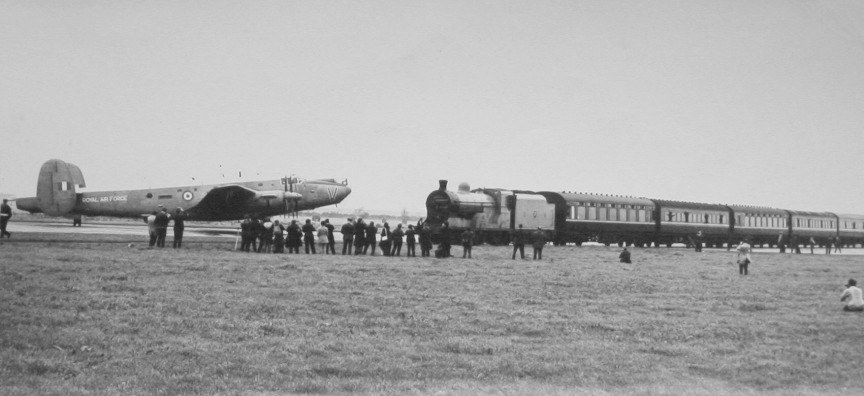 You lot in the RAF have form for this type of thing. This Lancaster pilot narrowly avoided the train at Shackleton Barracks in Co Belfast by pulling a hand brake turn