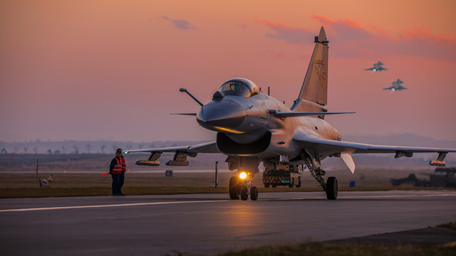 Great photo from the #RAFLuton station photographer SAC P Isstaker of one of our F16 Typhoons parking during lastnights sunrise #AvGeekpic.twitter.com/SSiQw9gnOk