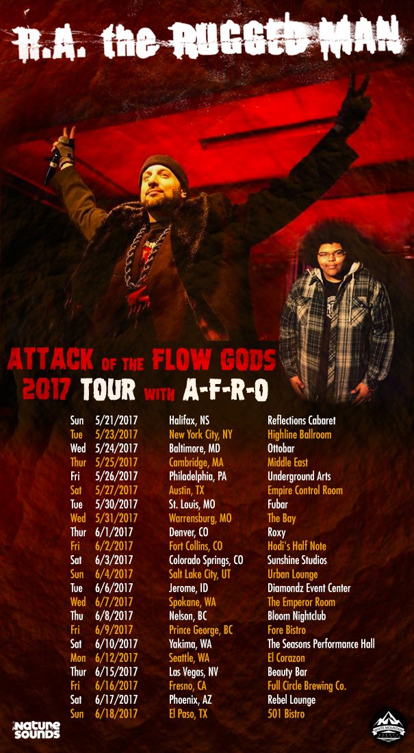 R.A. the Rugged Man with A-F-R-O "Attack of the Flow Gods" Summer Tour 2017 (USA and CANADA) - Updated - (more dates still to be announced)pic.twitter.com/guNYUbt2ib