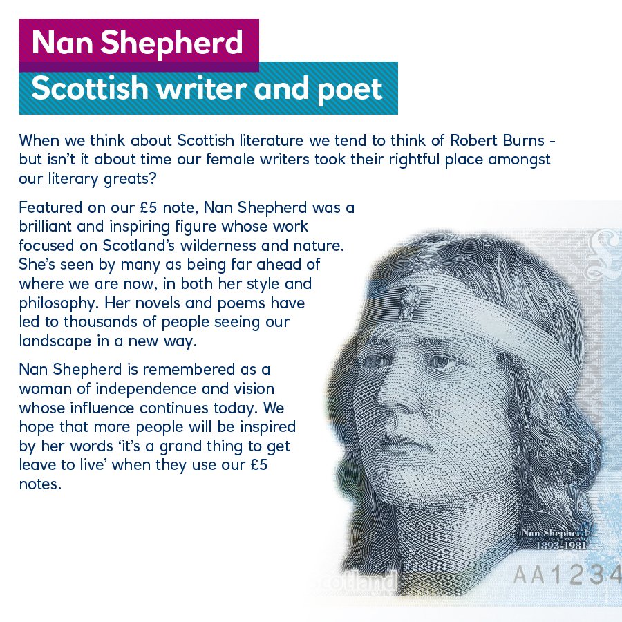 #InternationalWomensDay find out more about Nan Shepherd, Mary Somerville & Kate Cranston – the faces of Royal Bank of Scotland’s notes by 2020:pic.twitter.com/FEKb1zW4Nx
