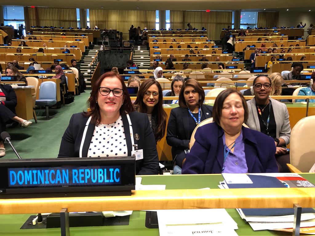 Parte de nuestro equipo de la Tercera Comisión Ministra Consejera Mariela Sánchez, Consejera Rood Fernández, Primera Secretaria Karla Tejeda junto a la Ministra de la Mujer @JanetCamiloRD, participando en los trabajos de la CSW, en la Sede de la Naciones Unidas.pic.twitter.com/pxmv6KoRrg
