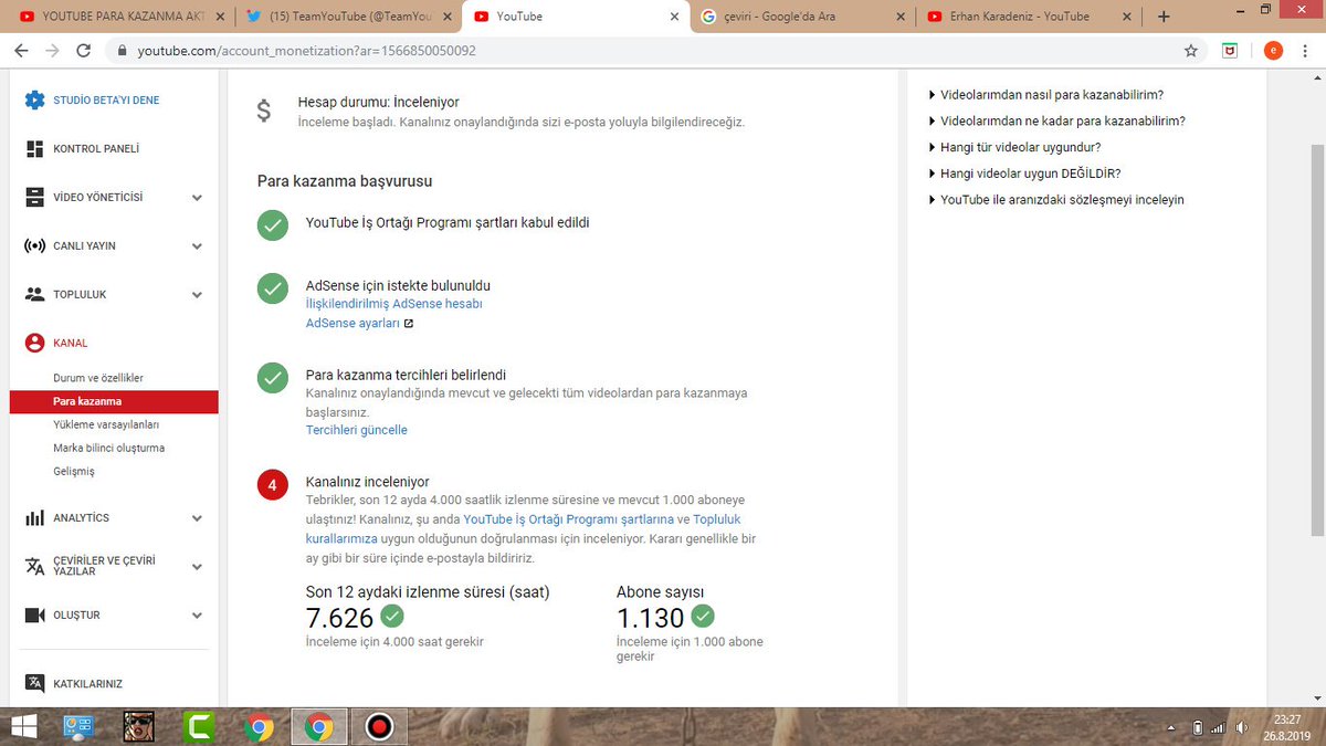 @TeamYouTube I complete 4.000 hours 1000 subscribers Can you please help me to open my channel for monetize as soon as possible https://www.youtube.com/channel/UCvwwlcHrkL3EcERw8PPU-Aw?view_as=subscriber …pic.twitter.com/BqfXYkJVrj