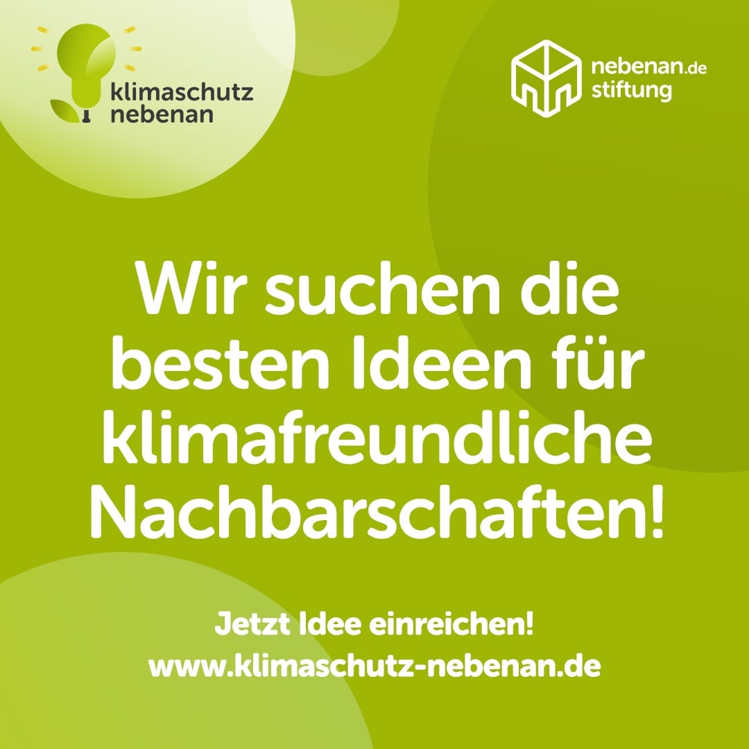 : Das DBUprojekt der @nebenanStiftung ist mit seinem Ideenwettbewerb gestartet. Ab sofort könnt ihr Vorschläge einreichen & zeigen, wie ihr Nachbarschaften nachhaltiger gestalten wollt. Jetzt mitmachen unter: https://www.klimaschutz-nebenan.de/ pic.twitter.com/OztBLPIeRw