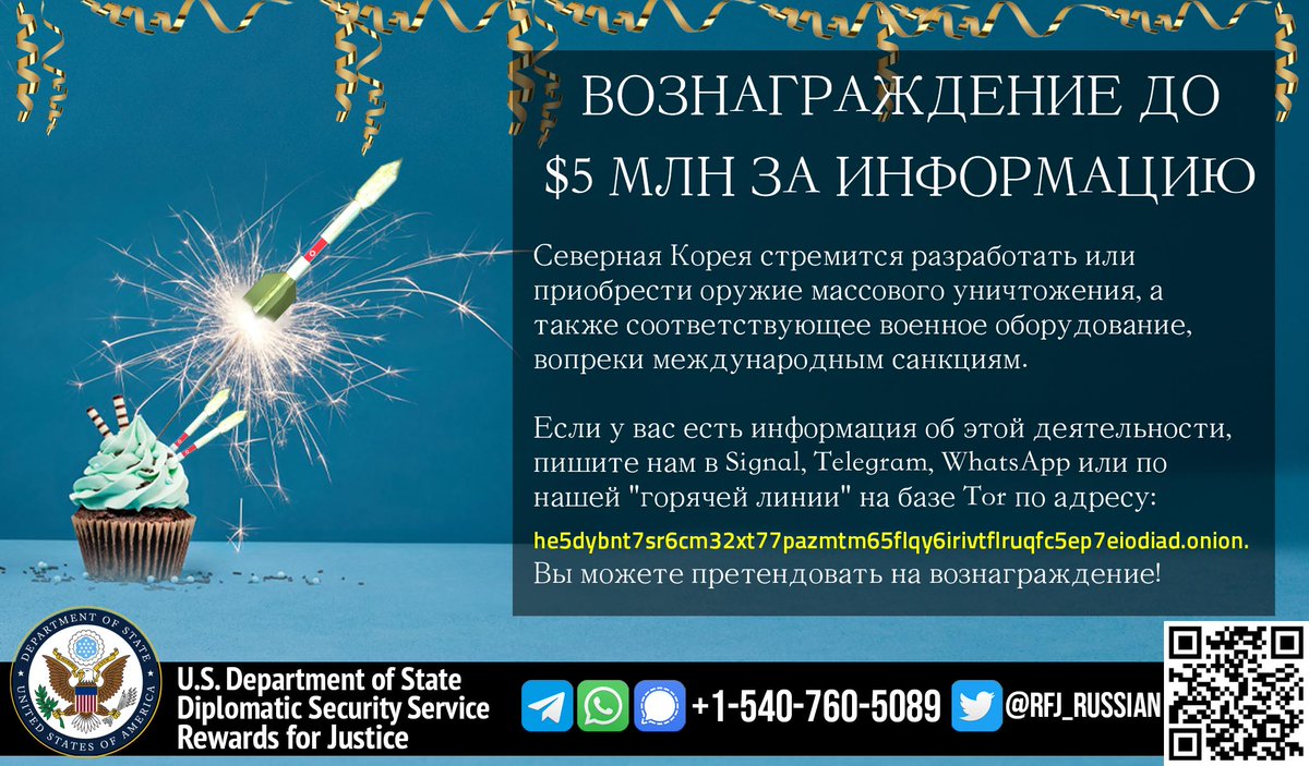 ПРЕДЛАГАЕМ ВОЗНАГРАЖДЕНИЕ ДО $5 МЛН за информацию о работниках КНДР в сфере ИТ, которые ведут злонамеренную кибердеятельность в нарушение законодательства США. У вас имеется такая информация? Пишите нам на предоставленный номер или используйте ссылку TOR, чтобы связаться с нами.pic.twitter.com/GoqfGwG0bk