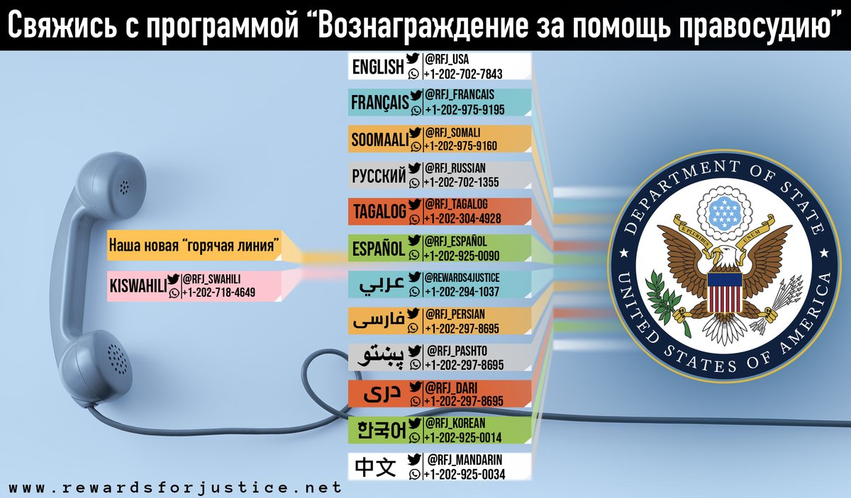 Если вы заинтересованы в трудоустройстве в программе "Вознаграждение за помощь правосудию," пожалуйста, читайте информацию ниже.pic.twitter.com/oWz0pFdFlU