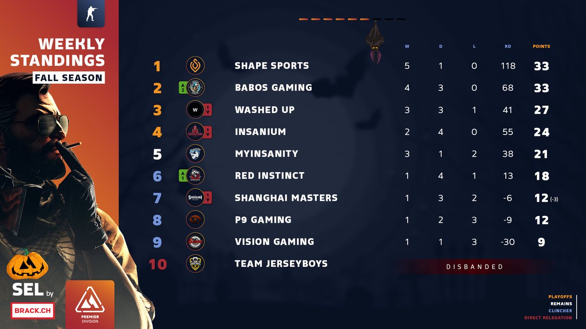 @SHAPE_Sports and@BabosGaming are tied on points. However, that will apparently change this week.