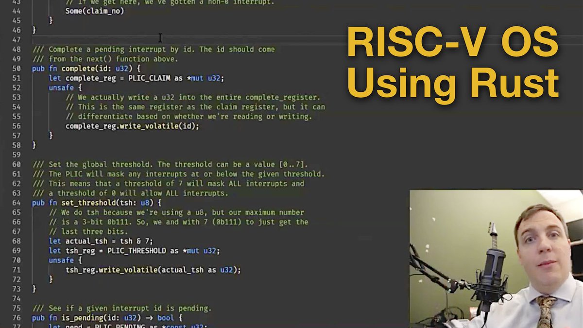 Making a RISC-V operating system using Rust (an on-going blog series by Stephen Marz): 👉 http://osblog.stephenmarz.com/  🛠 https://github.com/pavehawk2007/osblog … 📺 https://www.youtube.com/user/pavehawk2007/videos … /via https://news.ycombinator.com/item?id=21446079 … #OSDev #Rust #RISCVpic.twitter.com/8mlzwIsDTs