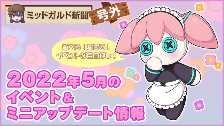 #ラグナロクオンライン 2022年5月の予定を公開したよ~! 「ワールド倉庫拡張アップデート」のほか、「エンドレスタワーアナザー」など、いろいろ楽しめるイベントがあるみたいだよ~(><) https://ragnarokonline.gungho.jp/campaign_event/event/midgard-news202205.html …pic.twitter.com/yrcs7JShRd
