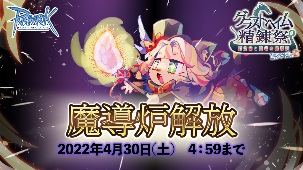 >魔導炉解放< 【グラストヘイム精錬祭 ~時空竜と賢者の魔導炉 Level.2~】 失敗しても壊れない精錬や、特別な精錬もできるフィーバータイム「魔導炉解放」発生中! 初日は、定期メンテナンス終了時から♪ ▼2022年4月27日(水)4:59まで▼ https://ragnarokonline.gungho.jp/special/seiren-fes2022/ …pic.twitter.com/iQUsPD3yqV