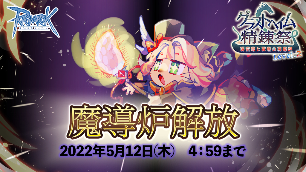 >魔導炉解放< 【グラストヘイム精錬祭 ~時空竜と賢者の魔導炉 Level.2~】 失敗しても壊れない精錬や、特別な精錬もできるフィーバータイム「魔導炉解放」発生中! ▼2022年5月8日(日)4:59まで▼ https://ragnarokonline.gungho.jp/special/seiren-fes2022/ …pic.twitter.com/wMaJFILB9o