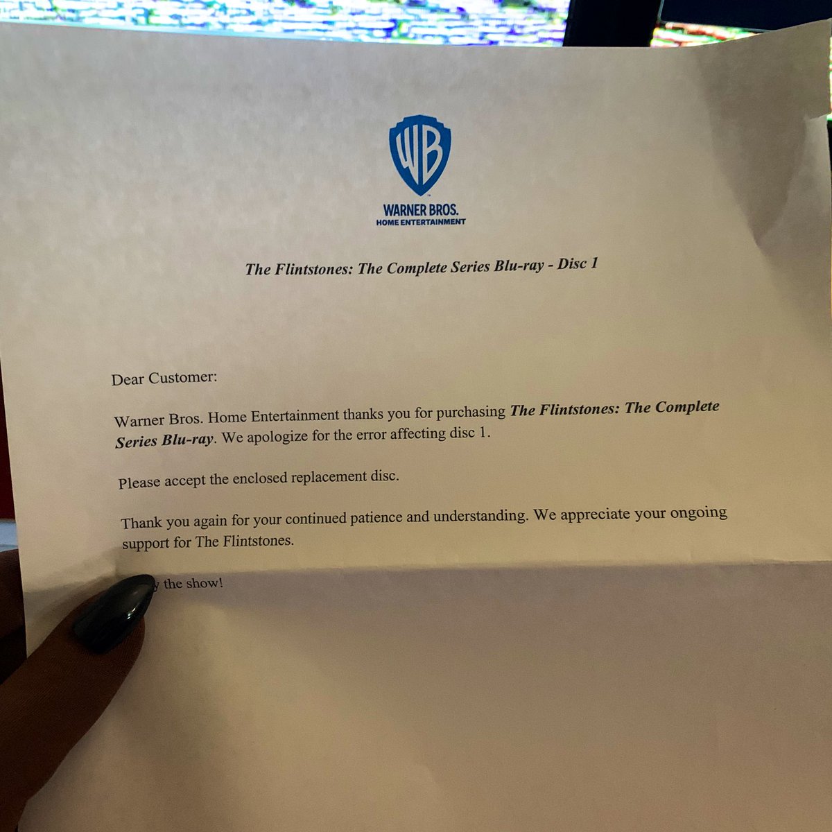 This is a dumb PSA but a few months ago I got the new Flintstones Blu-ray set but it turns out an episode on disc 1 didn’t have sound. So I requested a replacement disc and it finally got here, I totally forgot about it. If you got this set, make sure to get a replacement disc.pic.twitter.com/Ax8uS12wGd