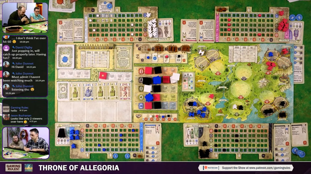 @gamingrulesvids live stream of Throne of Allegoria from@RMBLees, Steve Mackenzie and@ulible. The more I play this the more I like it, and it’s a lovely production from Spielworxx. Stream link: http://j.mp/2sSlyY3 pic.twitter.com/SIcxL6uBxH
