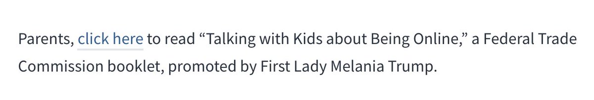 lmao... the White House/Melania Trump Be Best pamphlet about your kids being online is almost the exact same thing that the FTC published in Jan. 2014: 2014: https://www.consumer.ftc.gov/articles/pdf-0001-netcetera.pdf … 2018: https://www.whitehouse.gov/wp-content/uploads/2018/05/Talking-with-kids-about-being-online-_2018.pdf …pic.twitter.com/WJTobZAPC1