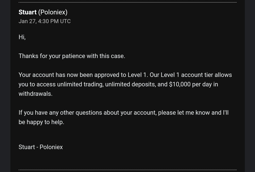 I see I only got a shitty Monero balance on it. You guys can keep it as a tip for delisting my asset. As a dev, communication with Polo has always been shit. Worse after Circle takeover and NON EXISTENT since Tron takeover. Thanks for delisting without communication