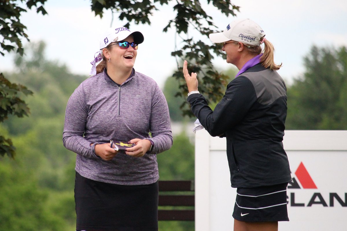 We'd love to know what Jennifer Bermingham said to @EK_Schneider on 18 tee box at @FuccilloKia518 Classic!