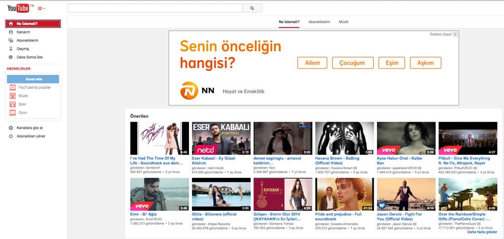 Bugün Youtube'da günlerden NN Hayat ve Emeklilik