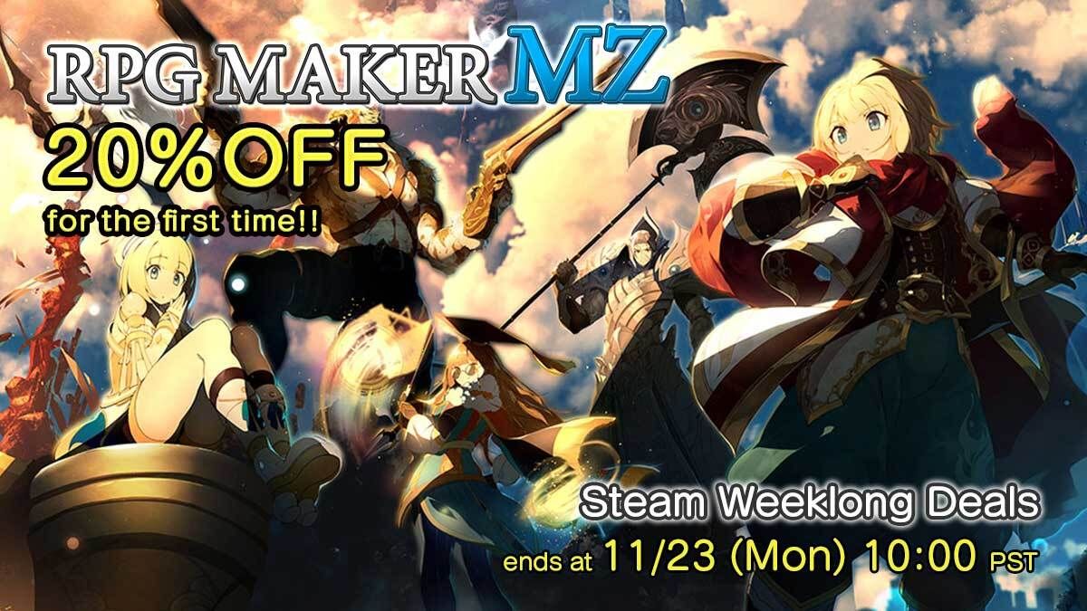 RPG Maker MZ weeklong sale on Steam! RPG Maker MZ is 20% off for the first time! The perfect time to upgrade to the latest maker.