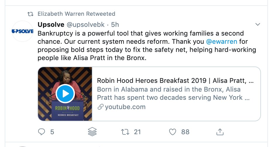 This economy is pushing struggling families to the breaking point, and our bankruptcy laws make it harder for them to get back on their feet. That's not right. I've got a plan to overhaul our consumer bankruptcy rules.https://elizabethwarren.com/plans/bankruptcy-reform?source=soc-WB-ew-tw-rollout-20200107 …