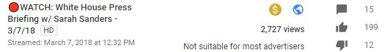 @TeamYouTube @YouTube Your stupid algorithm marked a White House press briefing "not suitable for most advertisers" AGAIN. How incompetent are you that you can't fix this after a year???pic.twitter.com/VjMI4gcY3Y