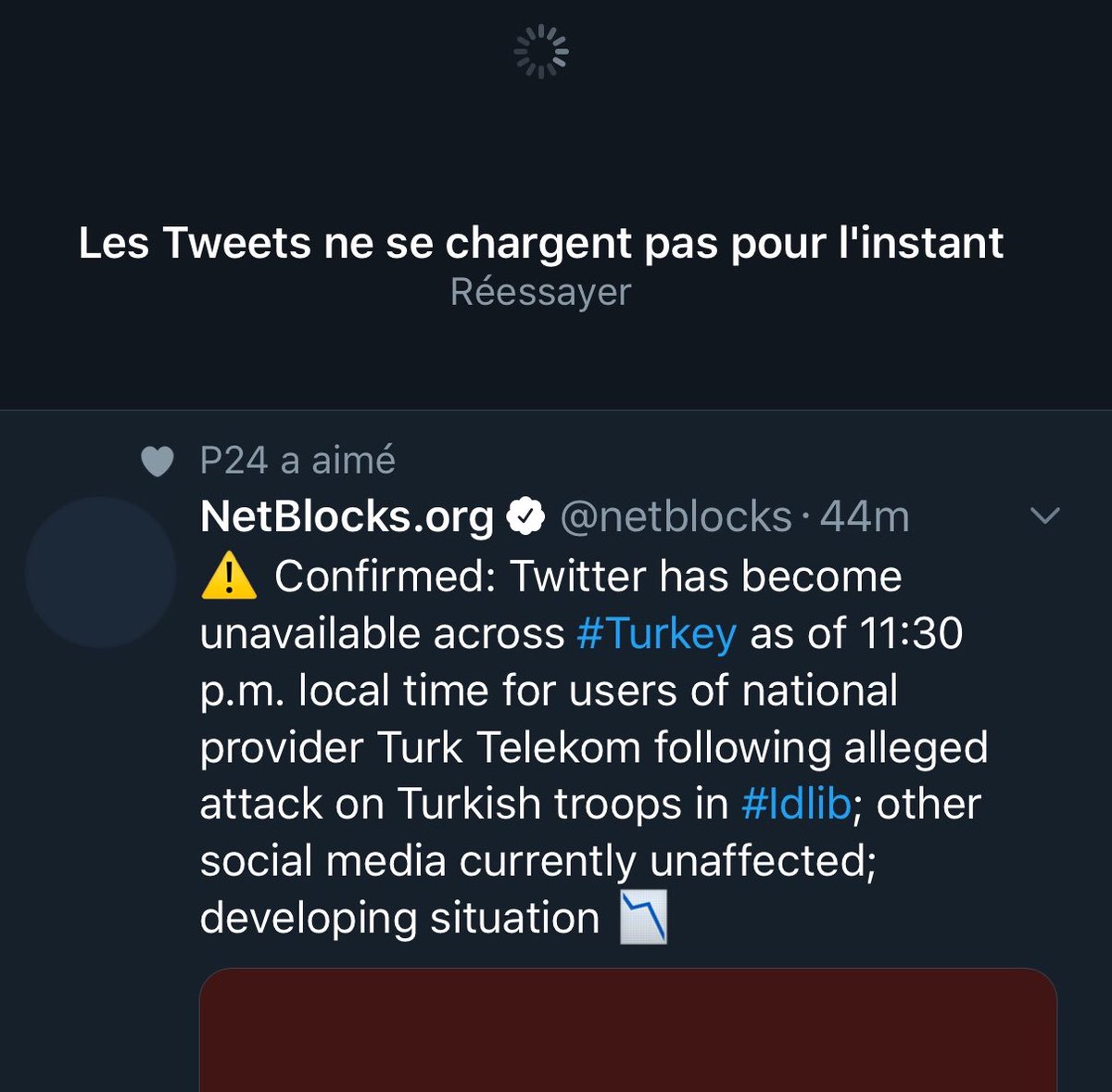 #Turkey:#Twitter unavalaible, across the country since yesterday evening, after Turkish troops were hited in#Idlib and Turkey says will not longer stop refugees who want to go to Europe. No connection without VPN.pic.twitter.com/Mxb5KiHfO7