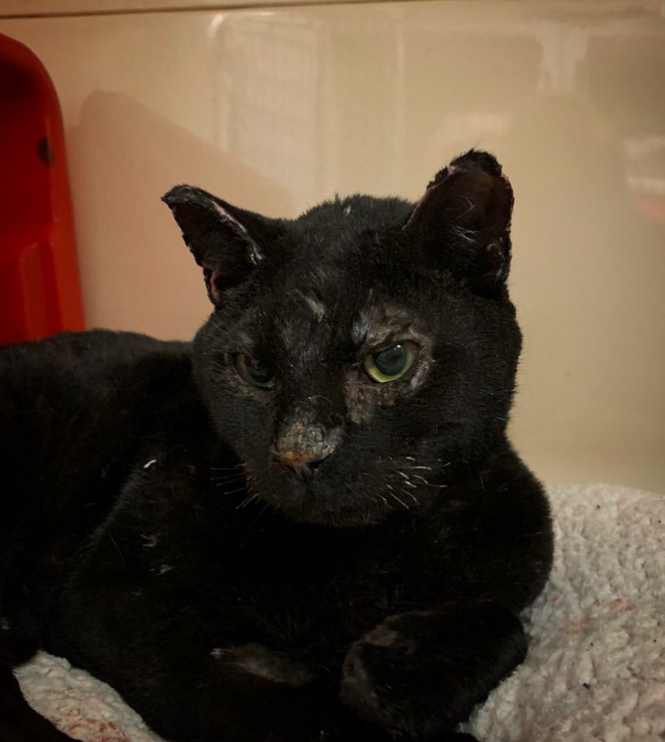 @ArdenHouseVets for the wonderful care they have been giving Smokey, the cat injured in the house boat fire. “Smokey is eating & likes fuss from the nurses... we're also hearing more purrs! Still a way to go with his sore feet... making progress”