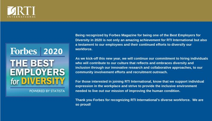 @RTI_Intl for bring recognized as one of the best employers for diversity. Proud to have you as a thought partner and sponsor of the 2020 Women in Global Development Leadership Forum taking place on May 6 in Washington DC.pic.twitter.com/LIwoWjrehC