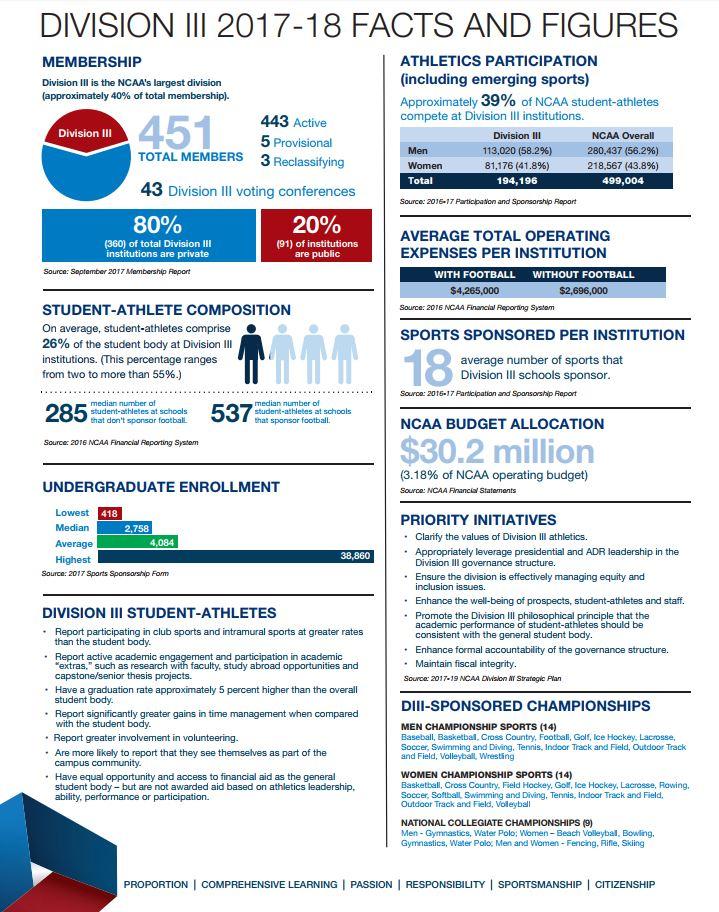 Division III is the largest NCAA division-- more schools, teams and playing opportunities than either DI or DII. Learn more https://on.ncaa.com/2uKiYDr