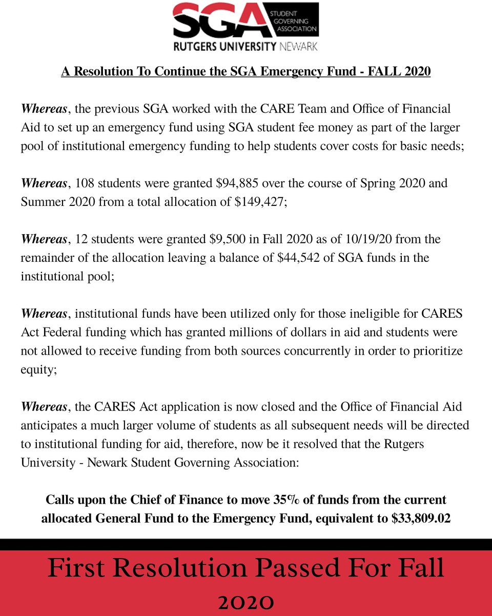 Greetings, Raiders! Today, the Student Governing Association passed a resolution to move 35% of its General funds to the Emergency funds which serves to aid students in these current unprecedented times. Reach out at runsga@gmail.com for any inquiries.pic.twitter.com/QXwMZ4Lpsa