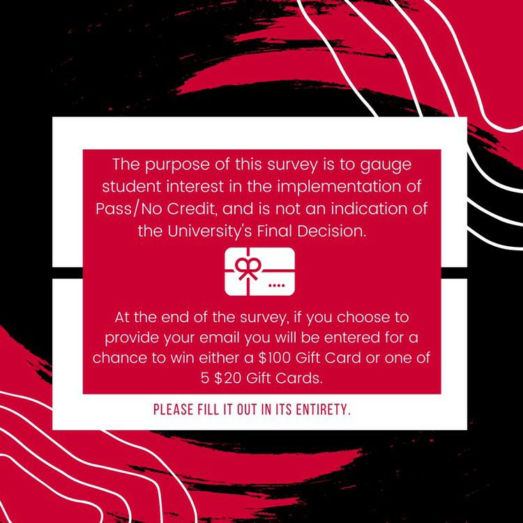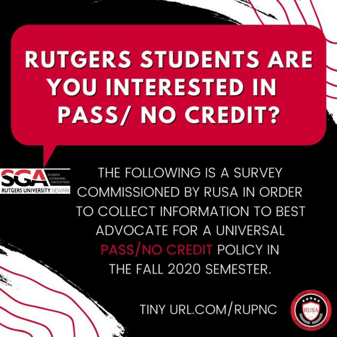 Hello Raiders, after hearing concerns from you, we're working with the student governments from all campuses of Rutgers to take your input on having the Pass/No Credit policy in the Fall 2020 semester. Fill out the survey and you could win a gift card!pic.twitter.com/Tv2UjP8WU8