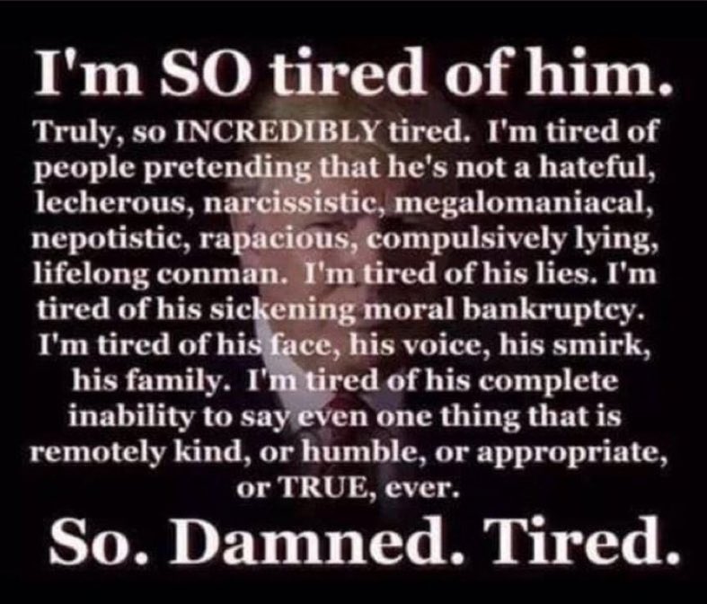 Thank you! I appreciate your honesty. There was more honesty in your post then the entire presidency of Mr. Trump. Hang in there! Stay well!